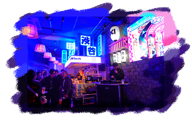 展示空間の演出とともに、音楽や交流を楽しむパーティータイム。