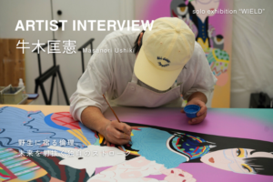 3月13日(金)より個展「WIELD」を開催する牛木匡憲。文具メーカーやゲーム会社でのキャリアを経て、現在はサンリオや日清食品など数多くの企業コラボや広告を手がける注目のアーティストです。アナログとデジタルを往復しながら描き出される、力強くも繊細な「未来への希望」に満ちた人間像。その独自のスタイルが確立された背景と、今展に込めた想いを伺いました。